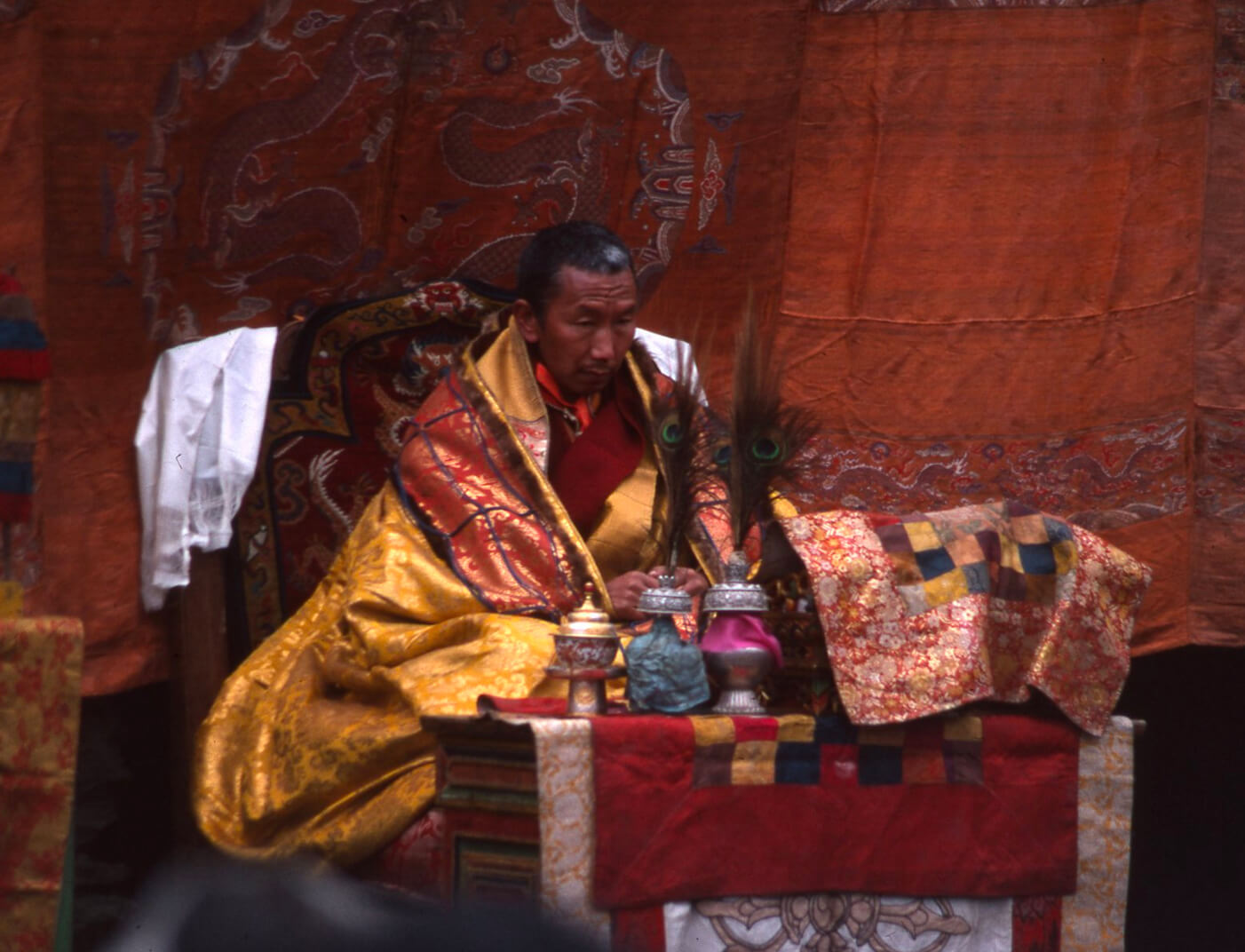 Sitting cross-legged on carpeted cushions in the enlarged prayer hall beneath the repainted murals, Rinpoche presided, monks chanted, incense wafted, drums pounded and hand bells chimed. Afterwards, colour-drenched dancers whirled in the stone flagged courtyard and conches signalled the close of the celebrations, but Ang Rita’s face was sombre with apprehension.