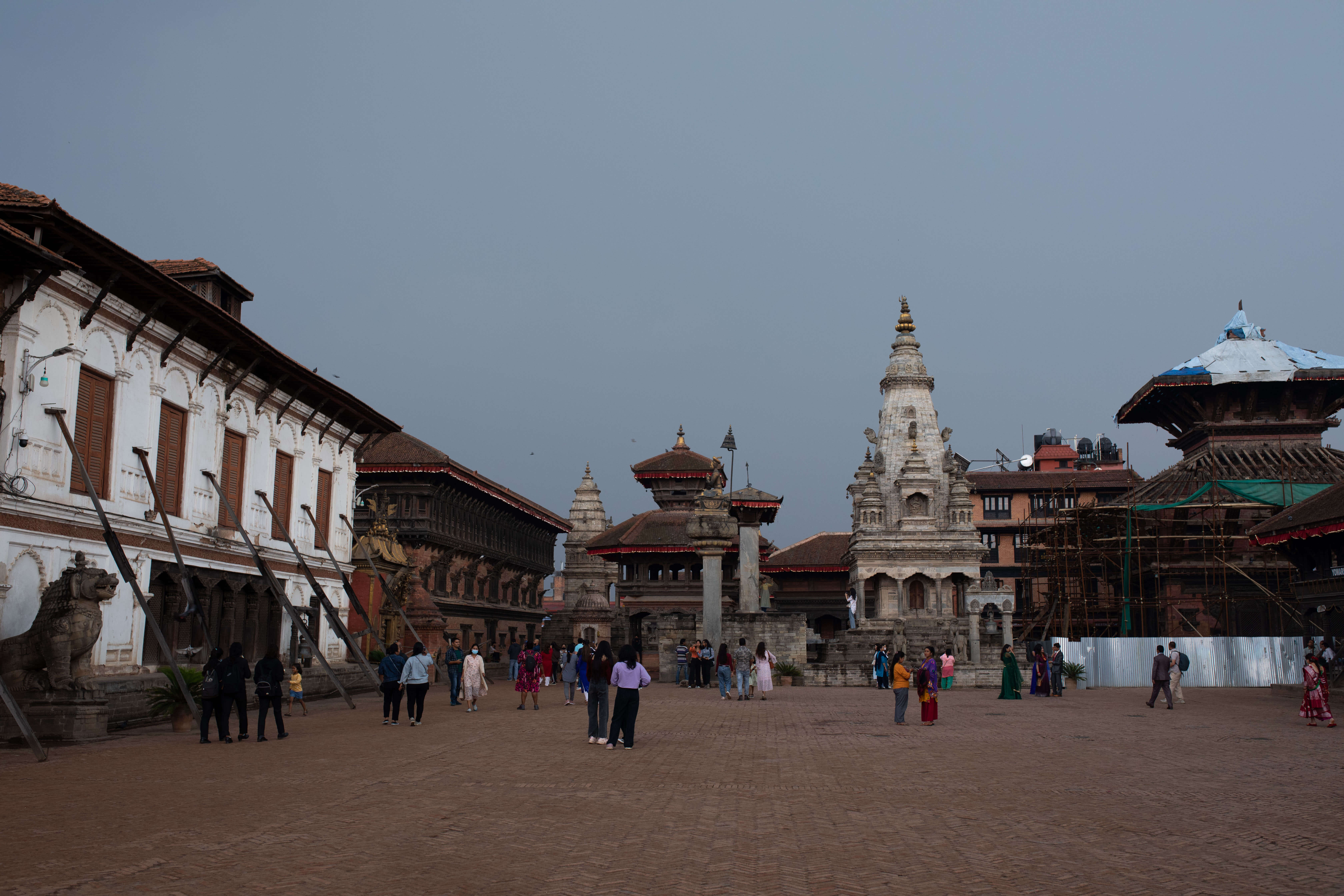 In contrast to this image are the highrise steel structures towering over the ancient towns. The skywalk in-progress in Kamaladi, for example, if seen at the right angle, breaks out behind the Ghanta Ghar like a glitzy attraction in a travelling fair.