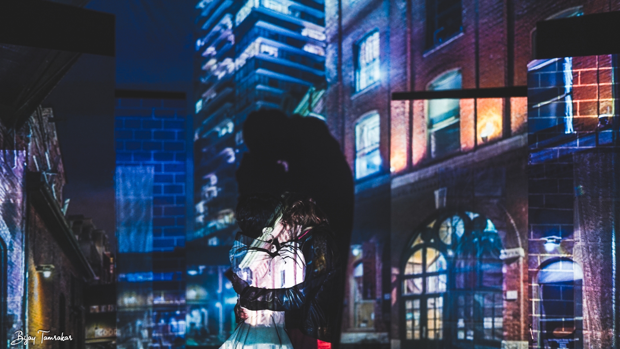 Sara and Callie are taking a walk late at night through the West Village. They have just been out at a bar and the night is young. Against the colourful high-rise of bricks and windows projected onto plywood screens, they give into the whirlwind of emotions long overdue and they kiss.