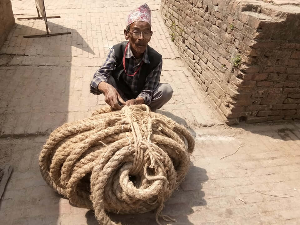 This year six artisans over the age of 40 built the Bhailakha. One of them was the 75-year-old Lal Bahadur Tamakhu, who is a farmer for ten months in a year and spends the remaining two building the chariot.