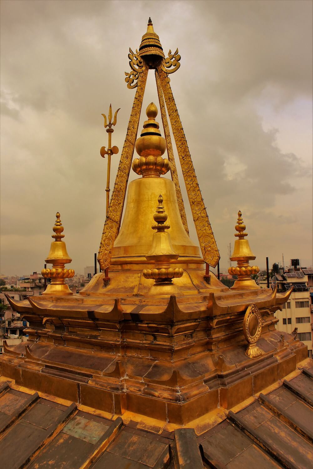 Artisans from Bhaktapur are busy replacing wooden columns that have bene damaged by copying the carvings from the intact ones. The metal roof has had to be repaired, and the pinnacle is gleaming in the sun after being cleaned and dusted, possibly for the first time in the 2002 years since it was built.