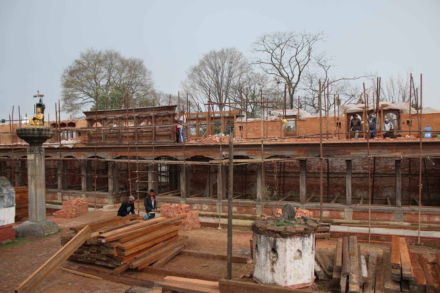 One of the more unique monuments under reconstruction is the Kal Mochan Temple and Mahadev Temple in Tripureswor. Having been built relatively recently in 1818, the temple is also unique because it is a tribute to a Shah queen, Lalita Tripura Sundari, but built in the style of the Malla period.