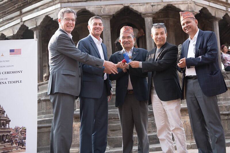 The person Trump handpicked to be Ambassador at Large for International Religious Freedom, former Kansas governor Sam Brownback, was in Kathmandu this weekend to meet government officials, religious leaders, and inspect the US Embassy-funded repairs on the Krishna Mandir damaged in the 2015 earthquake.