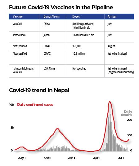 At present VeroCell and J&J vaccination drives are running in parallel across Nepal. Soon, the Japanese grant of 1.4 million AstraZeneca will be used to inoculate the elderly who have been waiting for four months for their second doses.