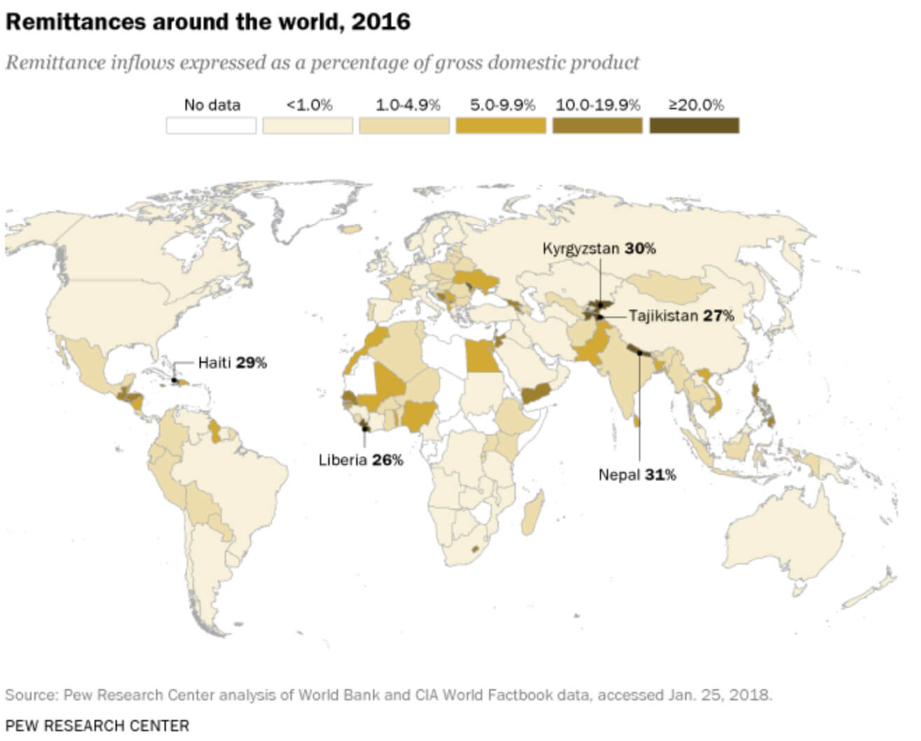However, experts say, South Asian economies will be hit much more directly if remittances take fall due to a future conflict. Of the South Asian countries, Nepal is the most dependent on remittances with the $6.6 billion it earns annually from overseas workers coming mostly from the Gulf. Remittances are worth 31% of Nepal’s GDP, the highest proportion in the world – even higher than labour exporting countries like Kyrgyzsan and Haiti (see map).