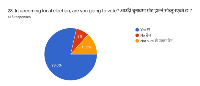 This shows that rather than being cynical about Nepal’s democracy, they see it as a way to bring change in the future. The response is a relatively high figure for political engagement compared to what young voters say elsewhere in South Asia and the world.