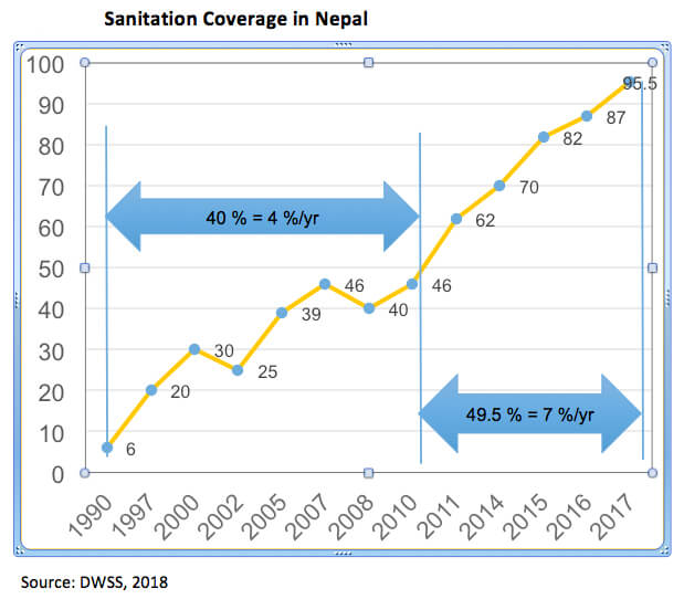 As Nepal marks National Sanitation Action Week, it is time for stock-taking. The statistics are dramatic: in 1990 only 6% of households had toilets, and that figure has risen to 95% today. The numbers went up sharply after the Sanitation and Hygiene Master Plan 2011 was implemented.