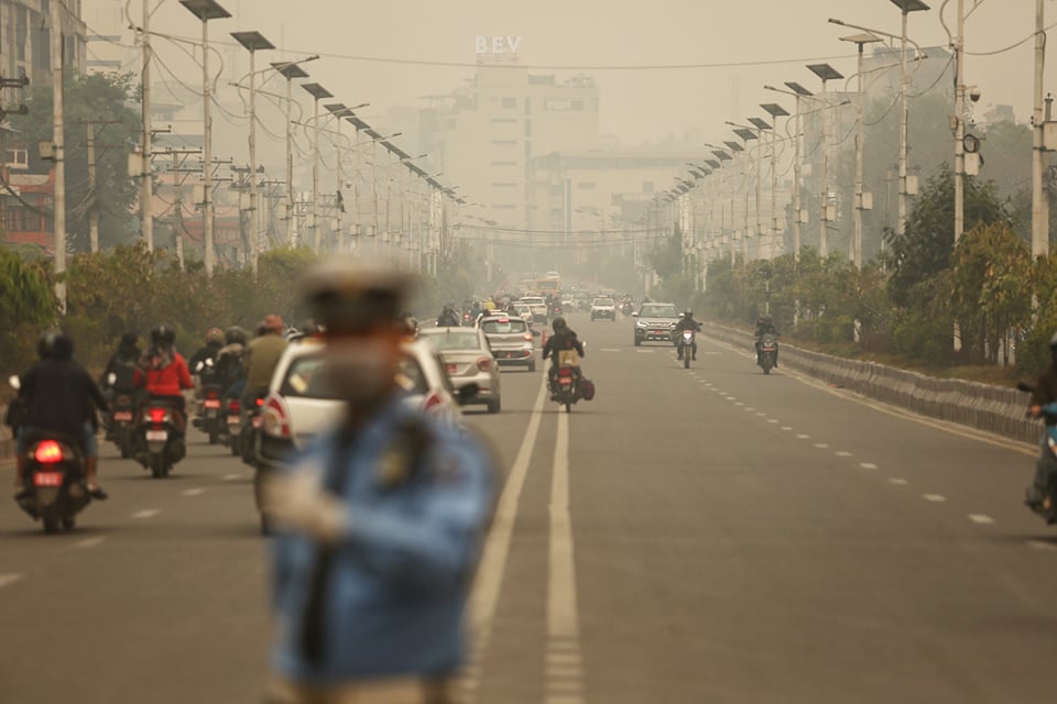 Many people in Kathmandu complained of a burning sensation in the eyes and difficulty breathing as the Valley was shrouded in smoke that was thick enough to block the afternoon sun.