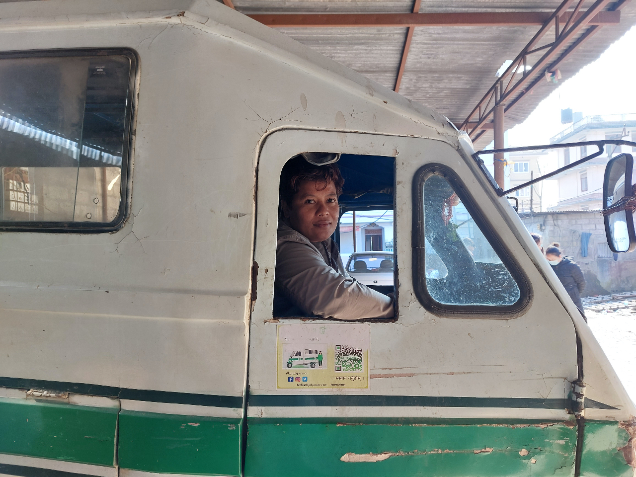 Ghising came to Kathmandu as a young mother 10 years ago, and initially worked as a seamstress. After the 2015 earthquake, she bought a Safa Tempo, at first not intending to drive it herself but after meeting other operators, changed her mind. She failed the licence test a few times, but got one eventually.